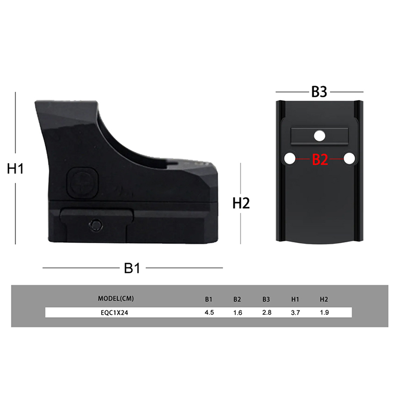 EQC 1X24 ब्लॅक हंटिंग ॲक्सेसरीज ऑप्टिकल 1X रेड डॉट साईट टॅक्टिकल आउटडोअर रेड डॉट साईट