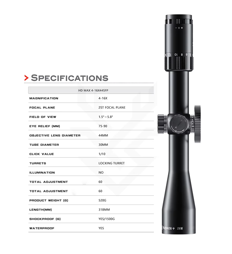 HD MAX 4-16X44SFP HD हाय लेन्स हंटिंग मोनोक्युलर टेलिस्कोप घाऊक