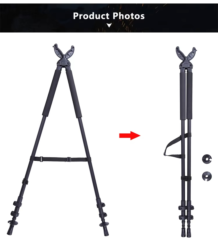 आउटडोअर टॅक्टिकल गन पोर्टेबल ट्रायपॉड सपोर्ट हंटिंग टेलिस्कोपिक शूटिंग रॉड व्ही-आकाराचा रोटरी योक ट्रायपॉड