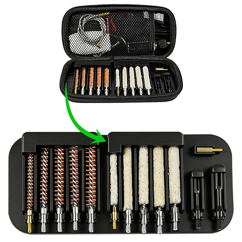 रायफल क्लीनिंग किटमध्ये 5 आकार (.177, .22, .243, .27, .30 कॅल.), ब्रास ब्रशेस समाविष्ट आहेत