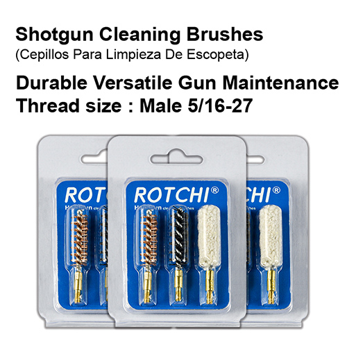 शॉटगन बोअर क्लीनिंग ब्रश 3-इन-1 सेट, ब्लिस्टर आणि कार्ड पॅकेज उपलब्ध आकार: 12G, 16G, 20G, 410