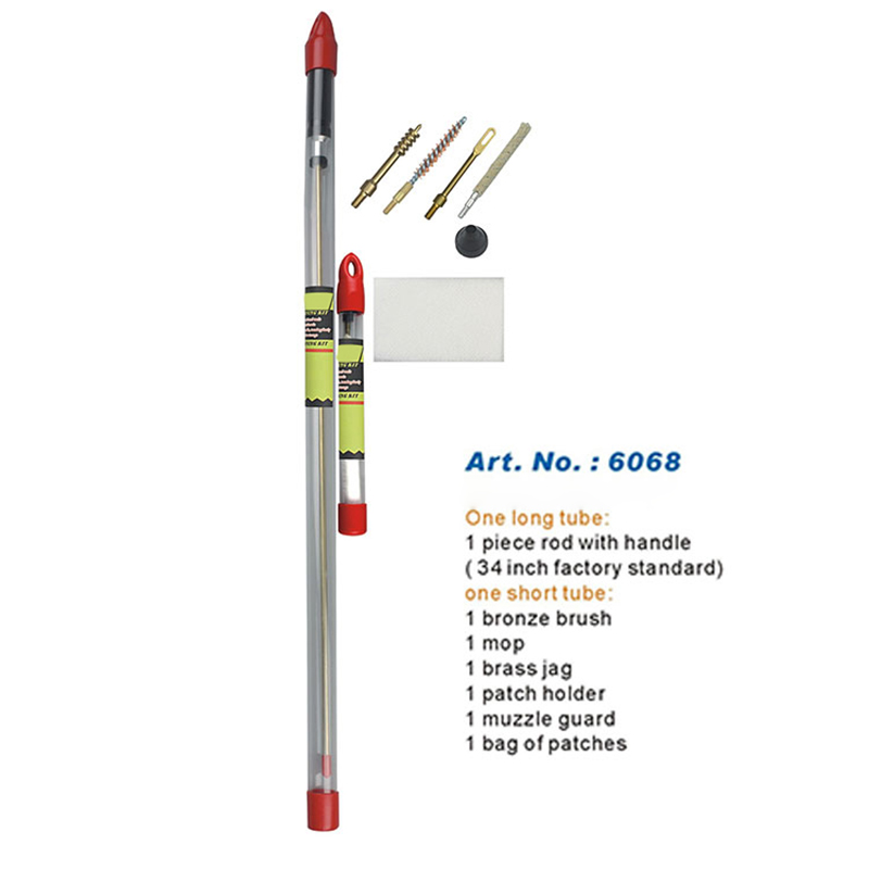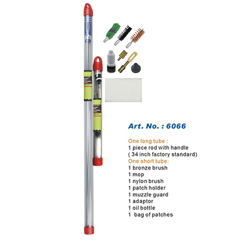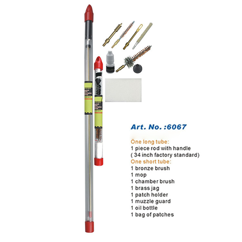 ट्यूब पॅक्ड गन क्लिनिंग किटचे अनेक फायदे आहेत: एक तुकडा लांब दांडा, फिरवत ॲल्युमिनियम हँडलसह, कटिंग नाही; विविध ब्रशेस आणि उपकरणे; पोर्टेबल लांब ट्यूब मध्ये पॅक. तोफा स्वच्छ करण्यासाठी उच्च आवश्यकता असलेल्या वापरकर्त्यांसाठी, हा चांगला पर्याय आहे.