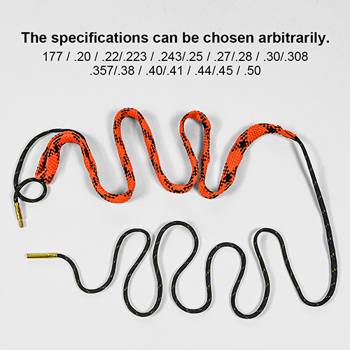 शिकारीसाठी गन क्लिनिंग किट, बोअर स्नेक किट [दोरीमध्ये बनवलेले ब्रश] साफसफाईच्या कार्यक्षमतेला बळकटी देण्यासाठी क्लिनिंग दोरीमध्ये पितळी ब्रश बांधले जातात. [सुपर क्लीनिंग] ब्रशसह सिंथेटिक फॅब्रिक दोरीने बोअर लवकर आणि पूर्णपणे साफ करता येते. [घट्ट शिवलेले] तोफा साफ करण्याचे दोर घट्ट शिवलेले आहेत, ते तुटणार नाहीत; [पुन्हा वापरण्यासाठी धुण्यायोग्य] दोरी पुन्हा वापरण्यासाठी धुण्यायोग्य आहेत.