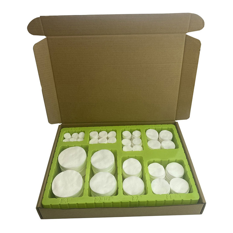 युनिव्हर्सल व्हाईट कॉटन क्लॉथ गोल गन क्लीनिंग पॅचेस ब्लिस्टर बॉक्स