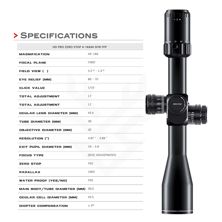 ZERO STOP 4-16X44 SFIR FFP-A 30mm व्यासाचा HD प्रकाश-प्रसारण करणारा झिरो स्टॉप हंटिंग स्कोप Ffp